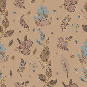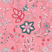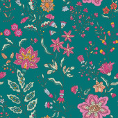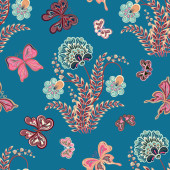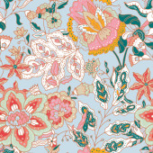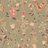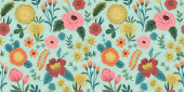 Zdjęcie "Jasne bezszwowe kwiatowy wzór z dekoracyjnych liści i kwiatów w stylu sztuki ludowej, wektor ilustracji. Idealny do tkanin, opakowań i produktów domowych." może być wykorzystywane do celów osobistych i komercyjnych zgodnie z warunkami zakupionej licencji Royalty-free. Obraz jest dostępny do pobrania w jakości wysokiej rozdzielczości do 5760x3840.