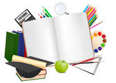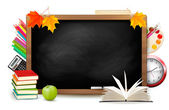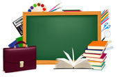 Powrót do szkoły. zielony zarządu przyborów szkolnych. wektor.