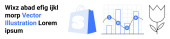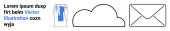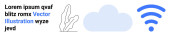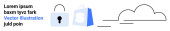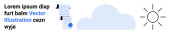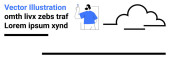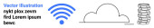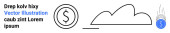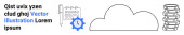 Chmura ze strzałkami w górę i w dół, znak dolara w okrągłej ramce i abstrakcyjny tekst. Idealny dla fintech, usługi w chmurze, transfer danych, systemy finansowe, monetyzacja, gospodarka cyfrowa proste