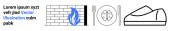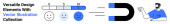 Ikona biegów, szkło powiększające, pasek wyszukiwania i ikona znaku dolara dla nawigacji, funkcjonalności i finansów. Idealny do projektowania stron internetowych, narzędzi biznesowych, analizy danych online zakupy technologii finansowych
