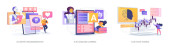 AI Enhancing Team Dynamics, Współpraca abstrakcyjny zestaw ilustracji wektor koncepcji. Tworzenie zespołów w oparciu o sztuczną inteligencję, interaktywne platformy kreatywności, płynna wielojęzyczna współpraca. abstrakcyjna metafora.