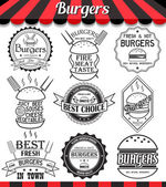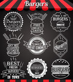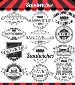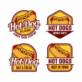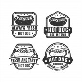 Hot-dogi zbiór wektor znaki, symbole i ikony. Zestaw elementów projektu, odznaki, naklejki i etykiety żywności zestaw.