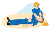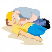 Scena ilustracja pierwszej pomocy, osoba o drgawki i zajęcia. Idealny do katalogi, przewodniki pouczające i medycznych
