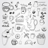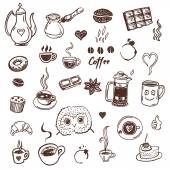 Wektor zestaw smaczne kawy ręcznie rysowane gryzmoły