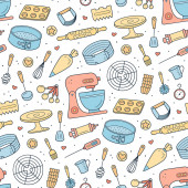 Wzór z elementami kuchni w wektor zarys. Ilustracja