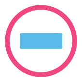 Minus kolory płaski różowy i niebieski okrągły znaczek ikony