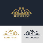 Monogram elementów projektu, taktowny szablon. Projektowanie logo sztuki kaligrafii eleganckiej linii. Pismo znak godło R dla Royalty, wizytówki, Boutique, Hotel, restauracja, kawiarnia, biżuteria. Ilustracja wektorowa