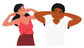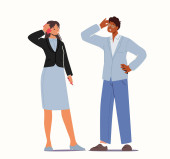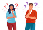 Zdjęcie "Młode wątpliwości mężczyzna i kobieta postacie z kreskówek rozważa rozwiązanie problemu poszukiwania decyzji widok stronie zwrócił się do siebie wektor ilustracji. Język ciała i reakcja emocjonalna" może być wykorzystywane do celów osobistych i komercyjnych zgodnie z warunkami zakupionej licencji Royalty-free. Obraz jest dostępny do pobrania w jakości wysokiej rozdzielczości do 5760x3840.