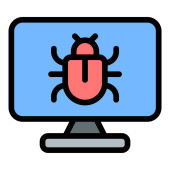 Ikona błędów płaska linia stylu ilustracja przedstawiająca błędy oprogramowania i debugowania, nadaje się do programowania, zapewnienia jakości i projektów związanych z technologią