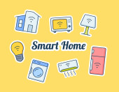 Inteligentne Ikony Domowe, Liniowe Ilustracje. Zestaw liniowych ikon wektorowych na temat Smart Home. EPS 10.