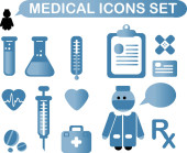 Zestaw symboli opieki zdrowotnej i ikon medycznych. Kolekcja ikon medycznych. Logo lekarza szpitalnego. Ilustracja wektora. Izolacja na białym tle.