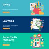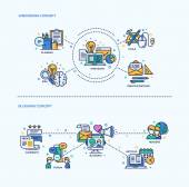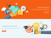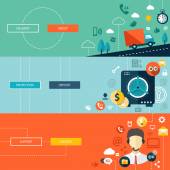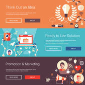 Płaski nowoczesny biznes nagłówki zestaw ikon i infografiki elementów. Koncepcyjne banery pomysł, rozwiązania, promocji, marketingu