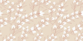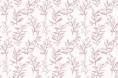 Płynny wzór wektora z minimalistycznymi liniowymi gałęziami z liśćmi na jasnym tle. Zwykła ozdoba natury dla eleganckich tekstyliów, tapet, opakowań i nowoczesnych projektów graficznych.