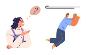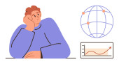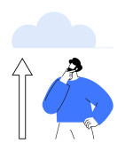 Zamyślony, indywidualny podbródek spoczynkowy pod ręką, strzałka wskazująca na chmurę przywołuje refleksję, ambicję, postęp i wizję. Idealny do samorozwoju, rozwoju kariery, uważności, podejmowania decyzji strategicznych