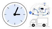 Pudełko tekturowe, stopery, obrotowe przekładnie. Idealny dla logistyki, żeglugi, efektywności, terminów, automatyzacji produkcji łańcucha dostaw. Czysta i prosta płaska metafora