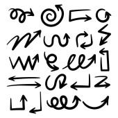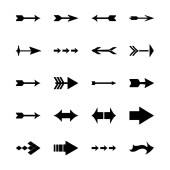 Projekt graficzny przedstawiający różne czarno-białe strzałki kierunkowe w wielu wzorach.