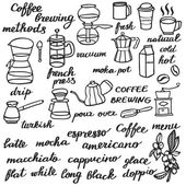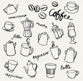 Duży zestaw do kawy. Ręcznie rysowane elementy kawy kreskówki. Rysunek Doodle.