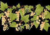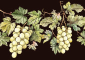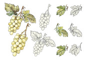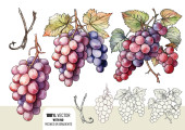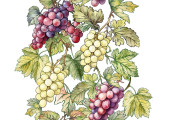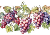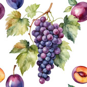 Płynny wzór wektora z dojrzałych gron winogron, liści i winorośli. Ręcznie rysowane akwarele. Idealny do etykiet win, tekstyliów, tapet i opakowań. Eleganckie, botaniczne i vintage inspirowane.