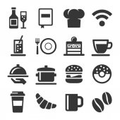 Restauracja i kawiarnia jedzenie napój zestaw ikon. Wektor