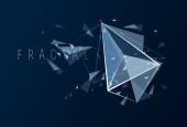 Porządek i chaos wektor abstrakcyjne tło, 3D ciemny czarny i jasny niebieski niski poli wielokątna powierzchnia z rozpadu rozbitych cząstek gruzu w ruchu.