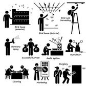 Człowiek do prania i czyszczenia dom kanapa, windows, drewniane meble, podłoga, wanna, miska WC, kuchnia i lustro w domu.