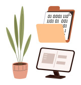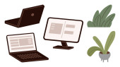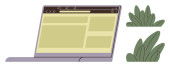 Minimalistyczny laptop z czystym ekranem, kwiatowy wazon uspokajający wystrój i element deski rozdzielczej analityki. Idealny do wydajności, technologii, analizy, pracy, kreatywności uczenia się charakter ostrości. Proste mieszkanie