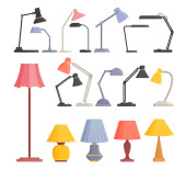 Zestaw Lampa podłogowa. Klasyczny i nowoczesny design. Ilustracja wektorowa