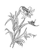 Calla lilly ilustracja kwiatowy, czarne i białe tło