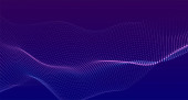 Zdjęcie "Abstrakcyjna kolorowa fala świecących kropek, która tworzy iluzję poruszających się fal na ciemnym tle. Wizualizacja przypomina dynamiczną falę wektorową 3D łączącą technologię, sztukę przyszłości" może być wykorzystywane do celów osobistych i komercyjnych zgodnie z warunkami zakupionej licencji Royalty-free. Obraz jest dostępny do pobrania w jakości wysokiej rozdzielczości do 5760x3840.