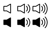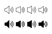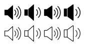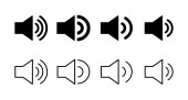 Zbiór ikon dźwiękowych. Symbole Vector Audio, Przyciski głośności. Elementy interfejsu do projektowania stron internetowych