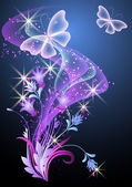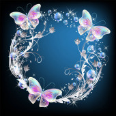 Przezroczyste latające motyle z ornamentem srebrnym