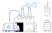 Rozładunek ciężarówki z recyklingu w fabryce emitującej dym, dokumenty potwierdzające certyfikację i zgodność. Idealny dla zrównoważonego rozwoju, recyklingu, przemysłu ekologicznego, zgodności, norm środowiskowych, odpadów