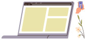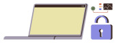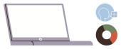 Open laptop, microphone, and document window on screen represent digital productivity and communication. Ideal for remote work, podcasting, virtual meetings, content creation, webinars, or teaching