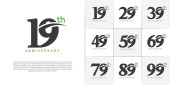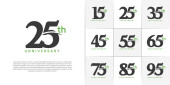 rocznica logotyp wektor projekt zestaw z czarnym charakterem pisma, zielony kolor może być używany na specjalny dzień