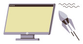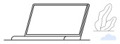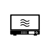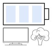 Sylwetka domu obok monitora z falowanymi sygnałami energetycznymi powyżej, symbolizującymi inteligentne systemy domowe. Idealny do inteligentnej technologii, oszczędzania energii, automatyzacji, komfortu, zdalnego sterowania, łączności