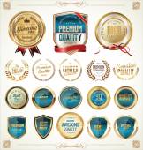 Zdjęcie "Jakości złotej odznaki i etykiety kolekcja" może być wykorzystywane do celów osobistych i komercyjnych zgodnie z warunkami zakupionej licencji Royalty-free. Obraz jest dostępny do pobrania w jakości wysokiej rozdzielczości do 5760x3840.