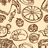 Samowar. Gorącą herbatę z bagietki. Bezszwowe tło wektor, ręcznie rysowane.