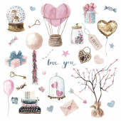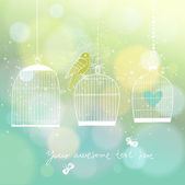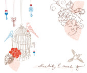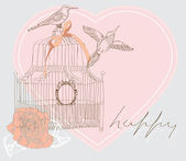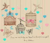 Walentynki ręcznie rysunek tło z ptaków, kwiatów i klatka