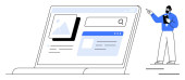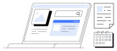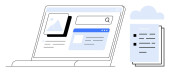 Ekran Laptop wyświetlający interfejs WWW do wyszukiwania obrazów i organizacji plików. Strzałka kieruje pobrane treści do pudełka. Idealny do technologii, zarządzania treścią, produktywności, przechowywania danych, cyfrowych