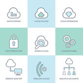 Cloud computing kolekcja ikony. Zestaw komputera symboli dla innowacyjnych technologii w komunikacji i przechowywanie danych.