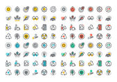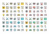 Płaska linia kolorowe ikony kolekcja procesu ludzkiego mózgu