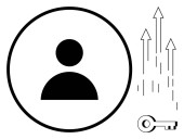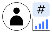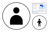 Okrągły profil użytkownika ikona, wykres linii ze strzałką wskazującą wzrost, i otwarty laptop. Idealny do marketingu cyfrowego, nauki online, strategii biznesowej, technologii, pracy zdalnej, danych zarządzania użytkownikami