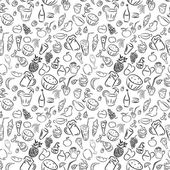 Texture seamless. Doodles cocktails and desserts, fruits,coffee,