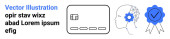 Analiza danych, technologia, emocje, komunikacja, struktury sieciowe i wizualizacja. Abstrakcyjne kostki połączone w siatkę, wykres i neutralną twarz. Analiza danych i koncepcja technologii