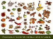 Zioła i przyprawy płynne tło z różnych przypraw i h