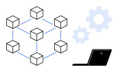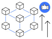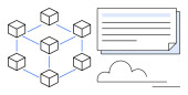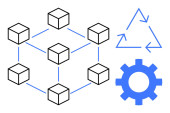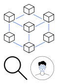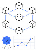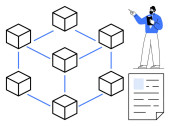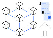 Sieć blockchain przedstawiona z połączonymi węzłami, cyfrowym dowodem tożsamości z gwiazdami i kluczami bezpieczeństwa. Idealny do technologii blockchain, bezpieczeństwa cyfrowego, weryfikacji tożsamości, danych