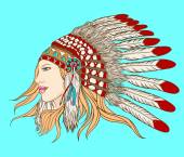 Native american indian szef fryzura. Ilustracja wektorowa na czarny
