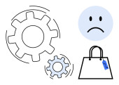 Wyzwanie. Mechanizm przekładni, smutne emocje i skrzynka przewozowa podkreślają wyzwania logistyczne w operacjach. Logistyka bada nieefektywność, błędy wysyłki i problemy z przepływem pracy