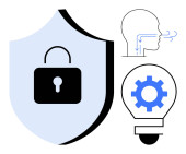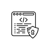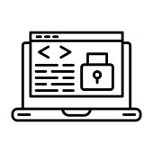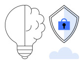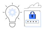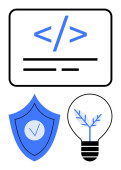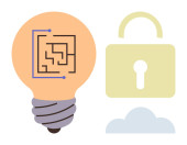 Ochrona danych, kodowanie, innowacje w oprogramowaniu, cyberbezpieczeństwo, programowanie, prawa do prywatności. Żarówka, symbol kodowania i kłódka są. Przedstawione koncepcje ochrony danych i kodowania