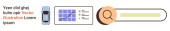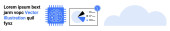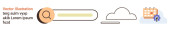 Wyszukiwanie danych, usługi w chmurze, projektowanie interfejsów, zakładki, nawigacja internetowa, interfejs użytkownika. Pasek wyszukiwania z lupą, ikona chmury czerwona gwiazda. Koncepcja wyszukiwania danych i usług w chmurze
